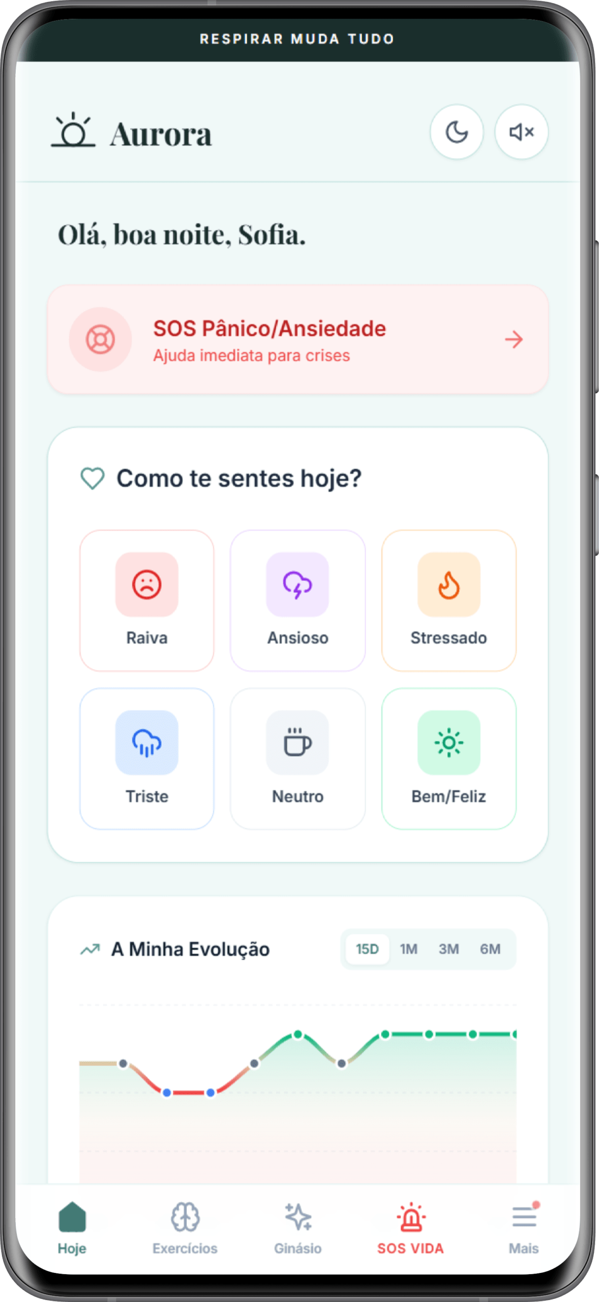 A Aurora não substitui ajuda profissional, mas ajuda-te a não ficares sozinho quando mais precisas.